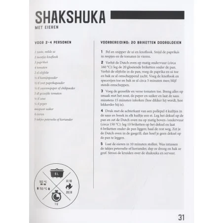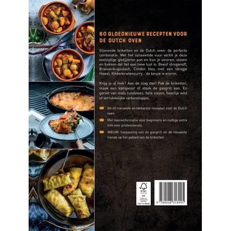 Met Dutch Oven – 60 nieuwe recepten haal je een inspirerend kookboek in huis voor iedereen die graag kookt met vuur. De combinatie van gloeiende briketten en een gietijzeren Dutch oven biedt eindeloze mogelijkheden om te smoren, stoven en bakken. In dit boek vind je maar liefst zestig nieuwe recepten, variërend van klassiekers tot verrassende gerechten.