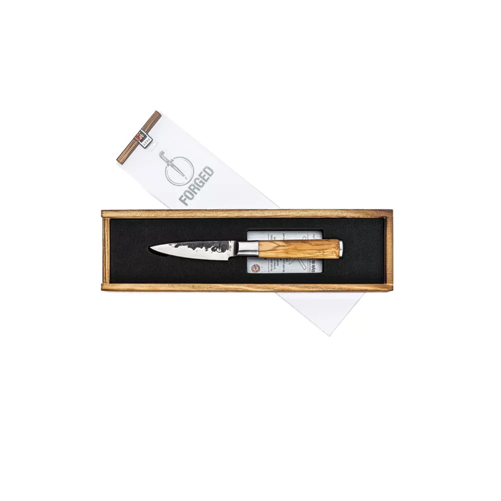 Het Forged Olive Schilmes is het kleinste mes uit de Forged Olive serie en speciaal ontworpen voor precisiewerk. Dankzij het lichte gewicht en het smalle lemmet is dit mes perfect voor het schillen van groenten en fruit, maar ook voor allerlei kleine snijtaken in de keuken.