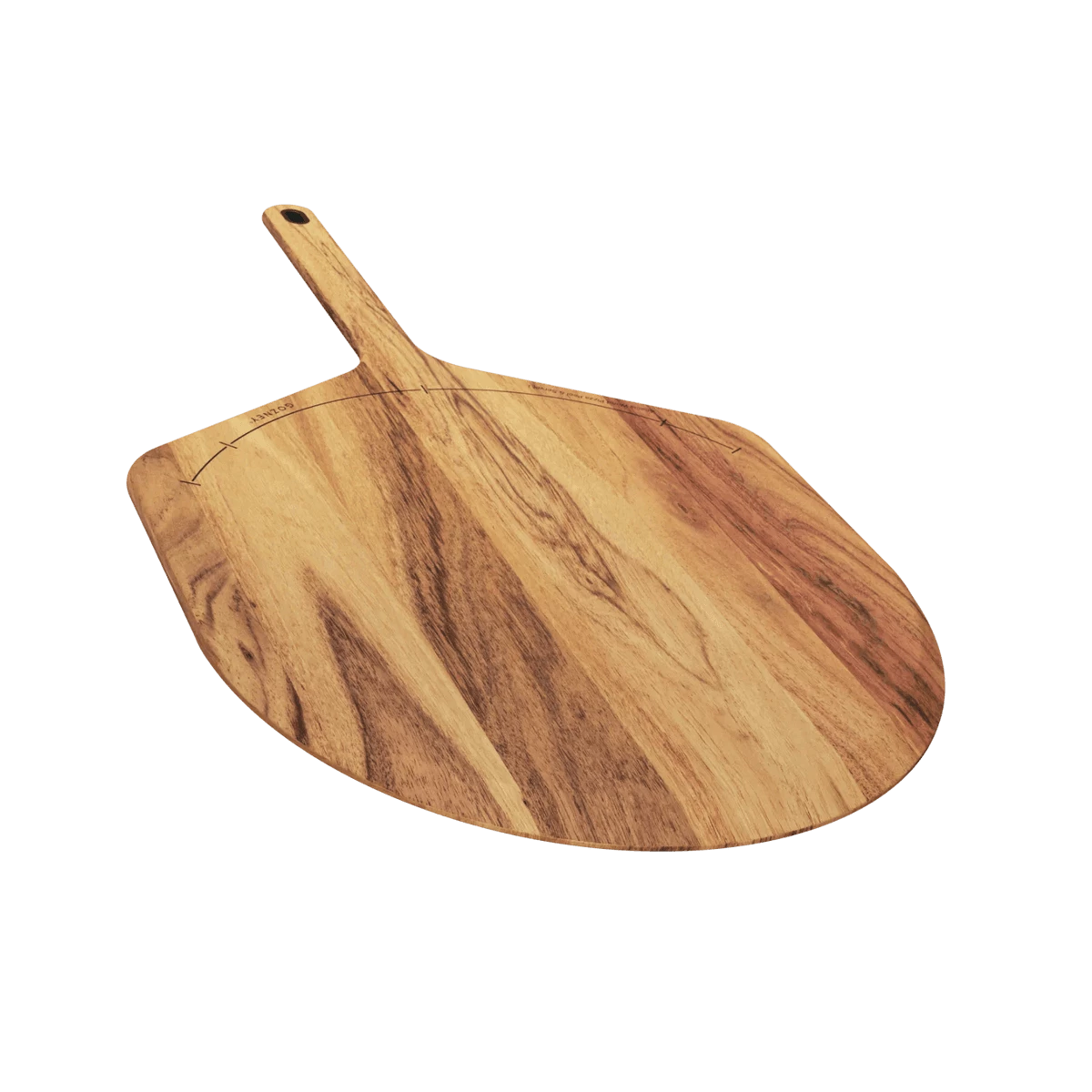 De Gozney Acacia Wood Pizza Peel and Server Large 14" is het perfecte hulpmiddel voor iedereen die pizza bakt op hoog niveau. Deze traditionele pizzaschep is vervaardigd uit duurzaam FSC-gecertificeerd acaciahout, dat bekendstaat om zijn sterkte, stabiliteit en natuurlijke antiaanbak-eigenschappen. Hierdoor kun je rustig je pizza op de schep bouwen, zonder dat het deeg blijft plakken.