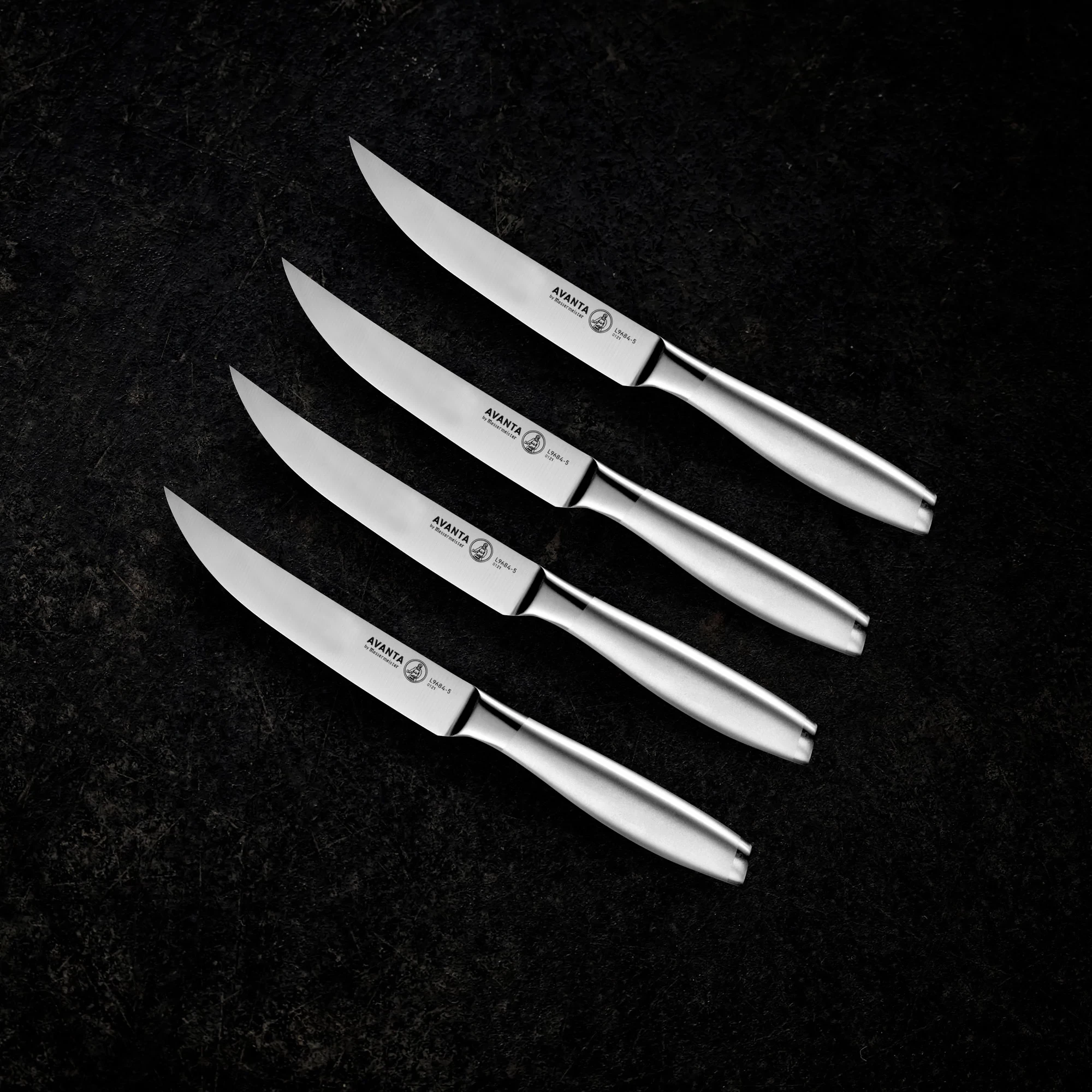 Set van 4 vlijmscherpe steakmessen met glad lemmet