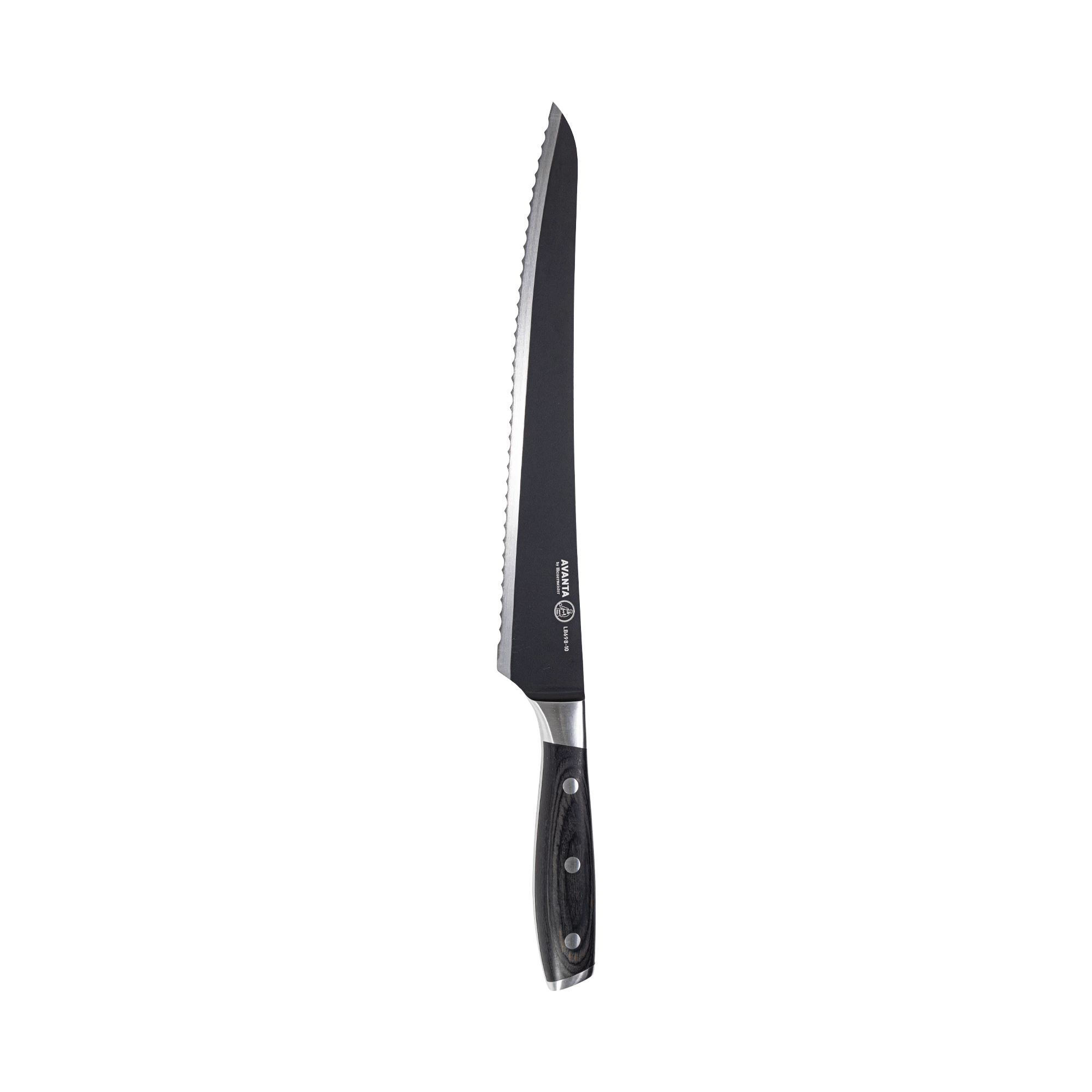 Het mes is volledig full tang geconstrueerd en voorzien van een elegant, triple-riveted Pakkawood handvat, dat comfort en balans biedt bij elke snede. De offset-greep houdt je hand veilig uit de buurt van de plank en de warmte van het vlees. Dankzij de veelzijdigheid gebruik je dit mes niet alleen voor pulled brisket, maar ook voor het snijden van brood, sandwiches en zachte vruchten of groenten.