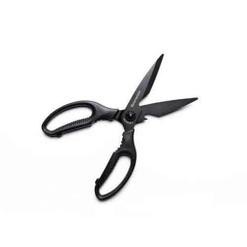 De bladen zijn makkelijk los te klikken voor grondige reiniging en weer eenvoudig te monteren. Het microserratie-profiel en speciale beengroef houden voedsel stevig op zijn plek tijdens het knippen. Handig: de schaar is uitgevoerd met een geïntegreerde flesopener en een notenkraker in de scharnierzone. De soft-touch handgrepen bieden extra comfort, zelfs bij intensief gebruik.