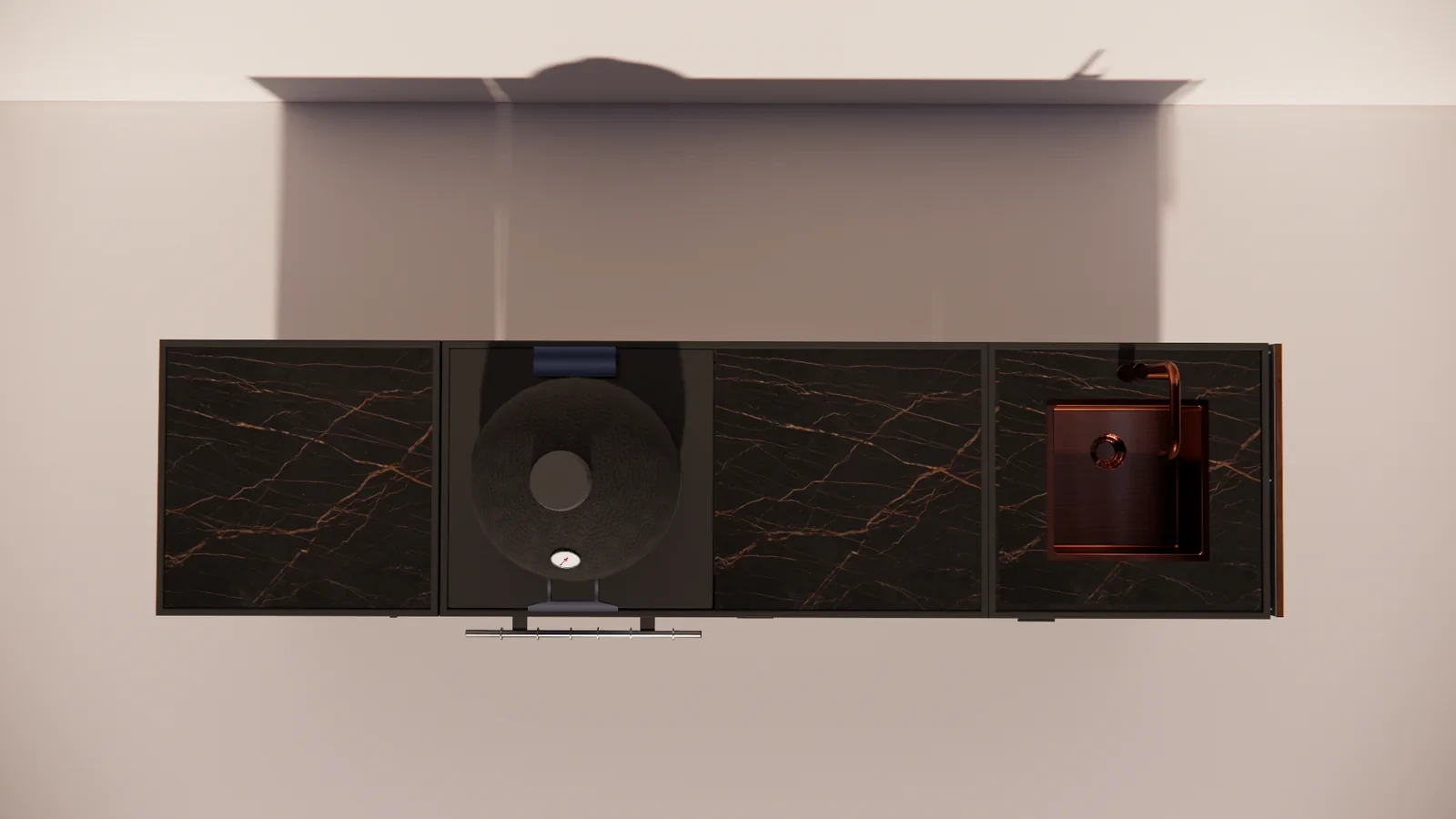Een Rubix Single met ingebouwde koelkast om drank en ingrediënten koel te houden.