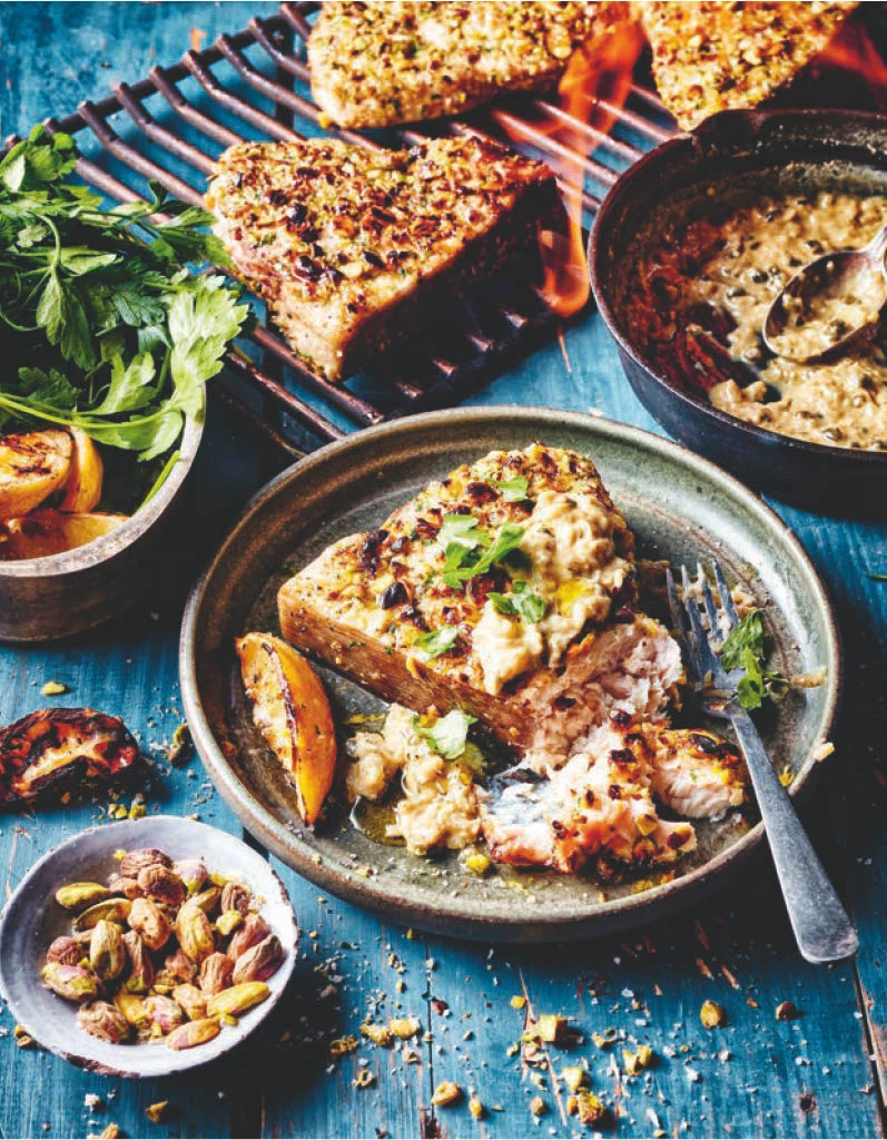 LEVERBAAR vanaf 31-3 Smokey Goodness Mediterranean BBQ is het BBQ boek waarmee je de zonnige smaken van Spanje, Portugal, Italië en Griekenland naar je eigen barbecue haalt. Vol toegankelijke recepten met vuur, kruiden, olijfolie en houtrook.