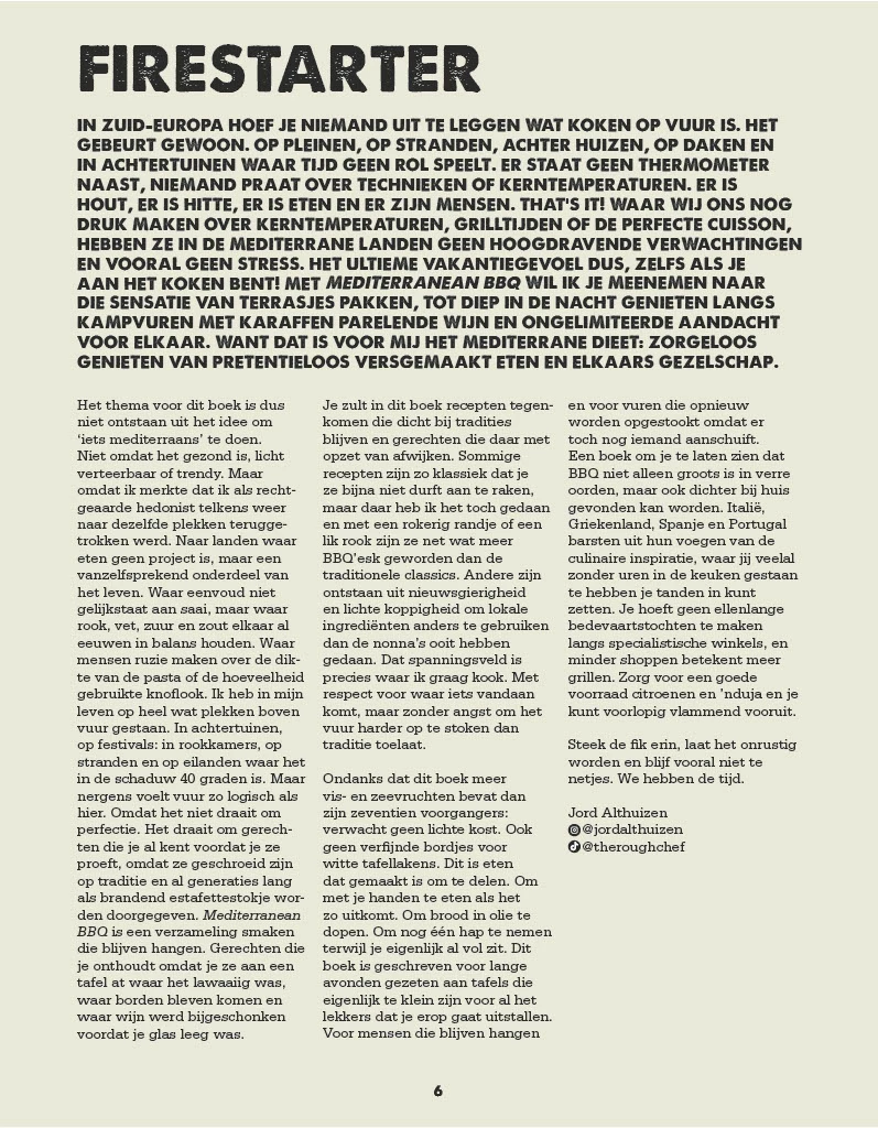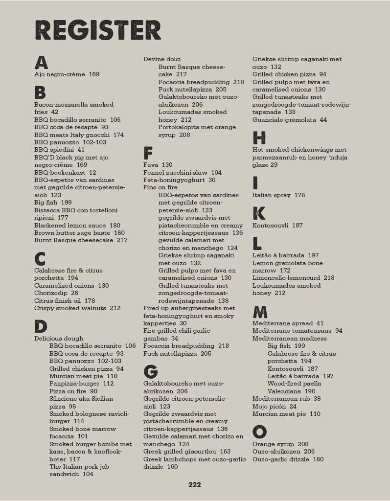 De basis is helder en praktisch. Goede olijfolie, geurige kruiden, pure ingrediënten en natuurlijk houtrook. Hierdoor maak je thuis gerechten die vol smaak zijn, maar niet ingewikkeld. Of je nu kookt op een kamado barbecue, keramische BBQ of een andere barbecue, dit boek geeft je inspiratie om vaker en gevarieerder buiten te koken.