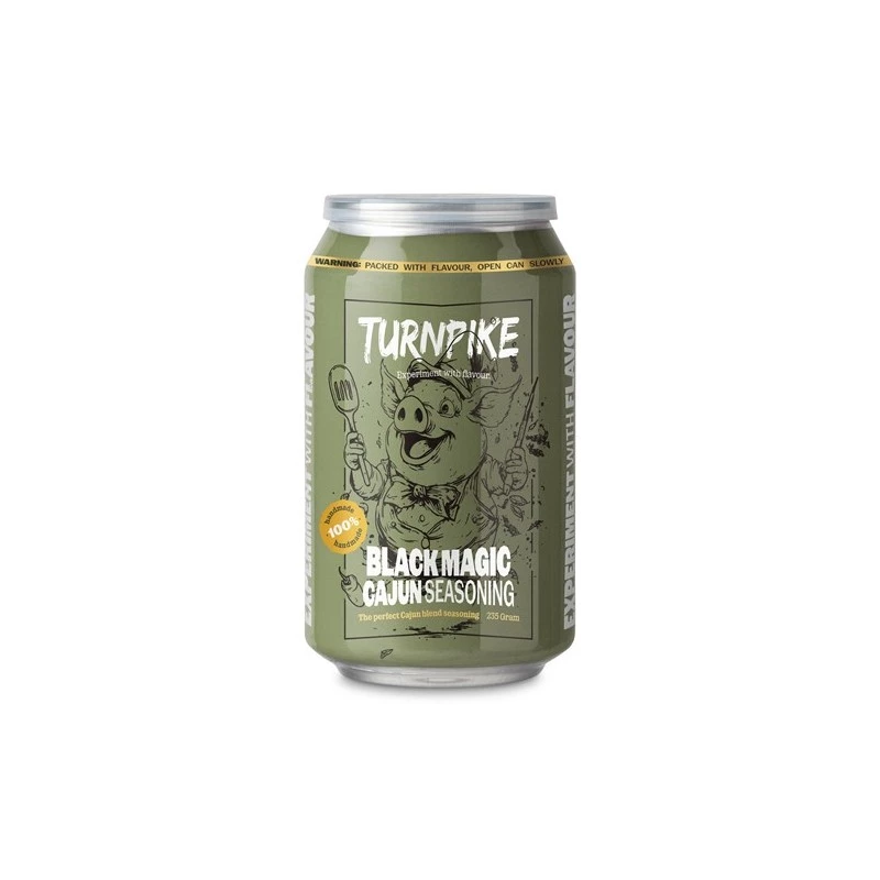 Ontdek de betoverende smaak van Turnpike Black Magic Cajun Seasoning, een krachtige kruidenmix die elke maaltijd naar een hoger niveau tilt. Deze Cajun blend combineert een selectie van licht pittige en zoete pepers met precies de juiste hoeveelheid knoflook, aangevuld met een rijke melange van aromatische kruiden en specerijen. Het resultaat is een diepe, volle smaak die perfect past bij vlees, gevogelte, vis, groenten en stoofgerechten.