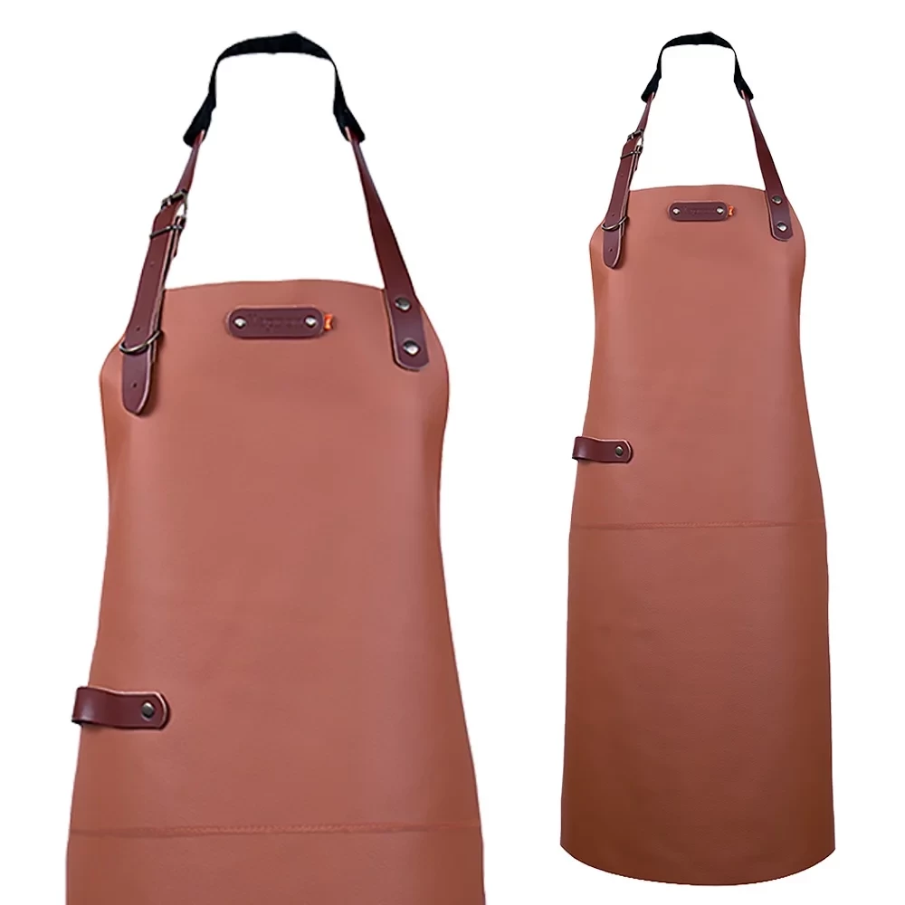 De warme cognackleur geeft dit schort een klassieke en tijdloze uitstraling. Perfect voor iedereen die houdt van stijl, vakmanschap en praktisch gebruiksgemak.