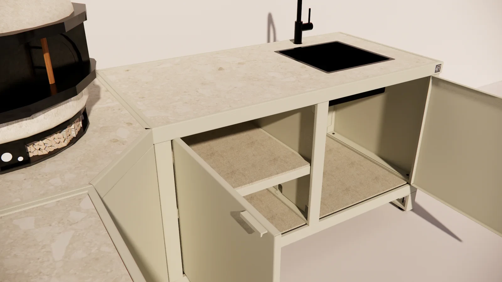 De hoogwaardige materialen en strakke afwerking zijn typisch Roostr: duurzaam, onderhoudsarm en ontworpen om jarenlang mee te gaan. Of je nu een diner bereidt of gewoon wilt genieten van een drankje buiten, deze opstelling vormt de ideale balans tussen stijl en gebruiksgemak.