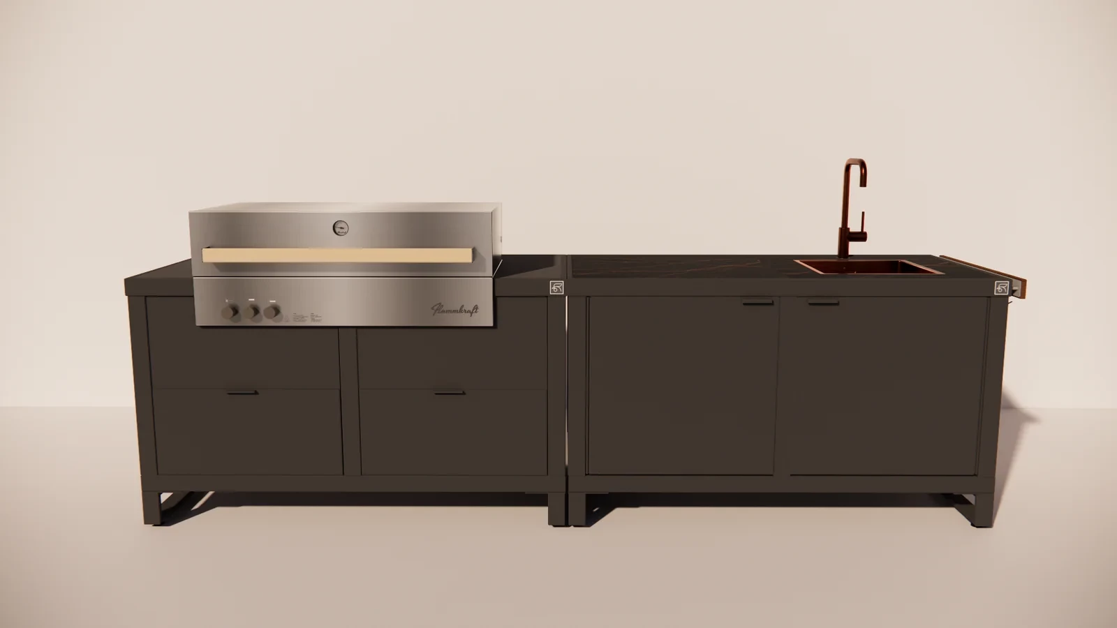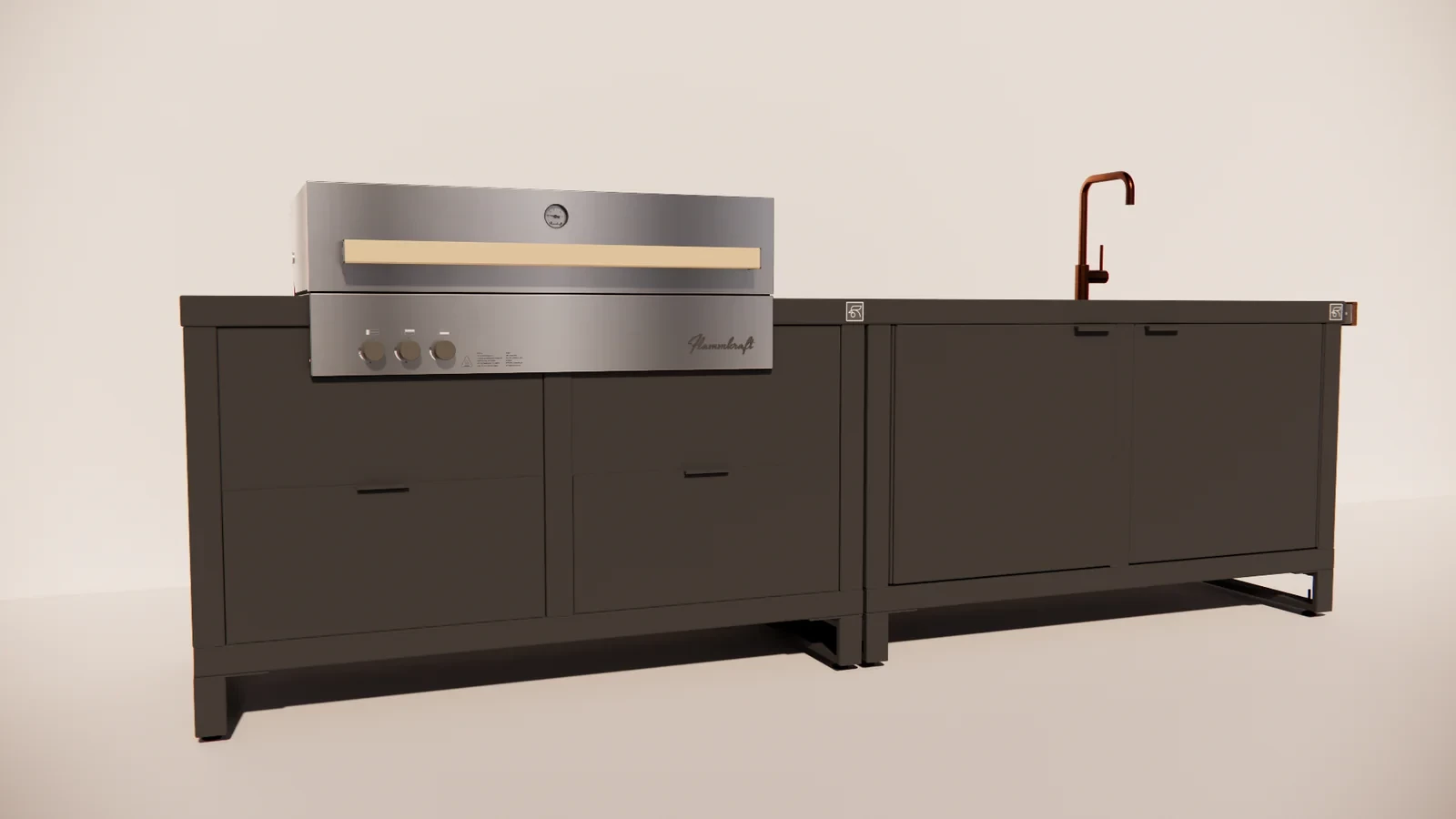 De gasbarbecue biedt directe hitte, optimale temperatuurcontrole en professionele prestaties, ideaal voor zowel snelle bereidingen als langzame grillgerechten. De spoelunit maakt het mogelijk om ingrediënten te wassen en servies af te spoelen zonder dat je je buitenkeuken hoeft te verlaten – alles binnen handbereik in één overzichtelijke opstelling.
