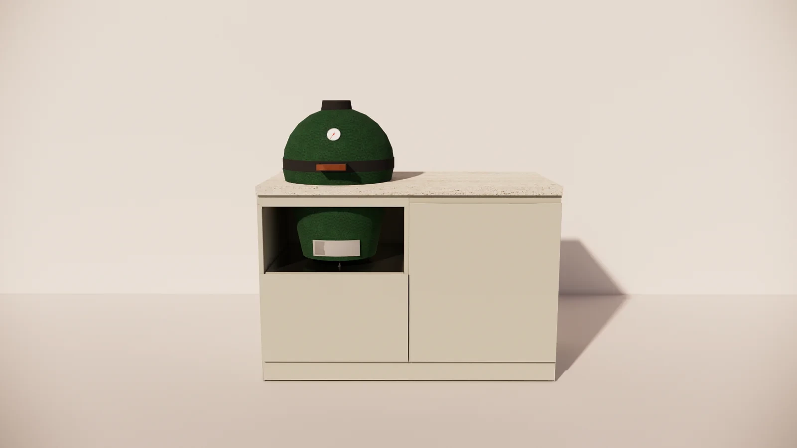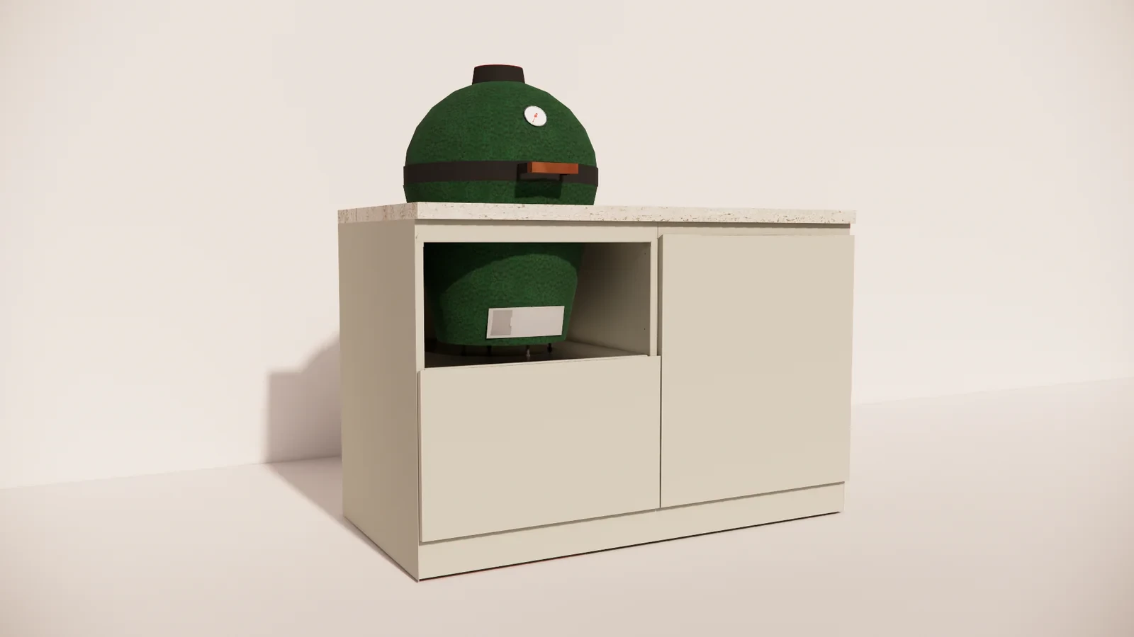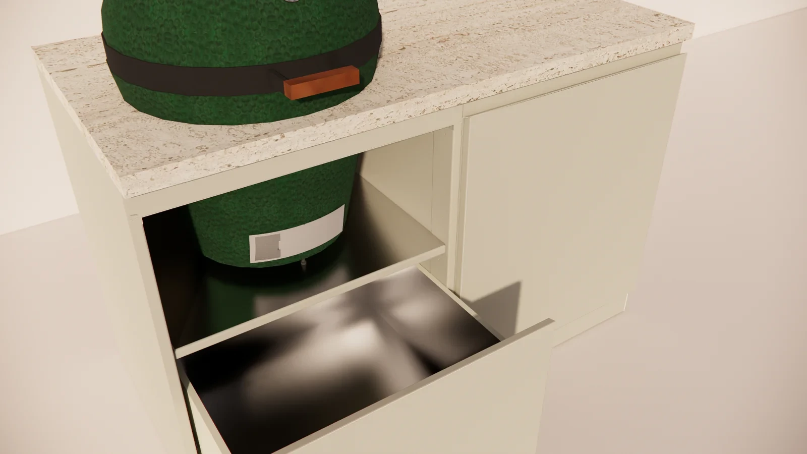 Het Marmorio werkblad geeft de buitenkeuken een luxueuze uitstraling en is bestand tegen hitte, vocht en intensief gebruik. De geïntegreerde kamado biedt ongekende veelzijdigheid: grillen, bakken, roken of slowcooken – alles is mogelijk met dezelfde precisie en constante temperatuurbeheersing.
