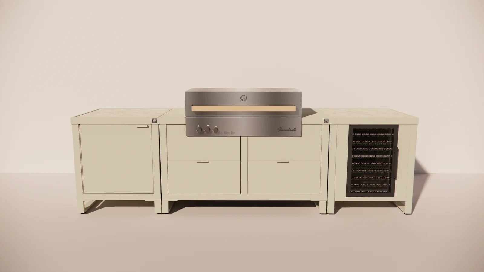 Dankzij het symmetrische ontwerp en de hoogwaardige afwerking straalt de opstelling rust, luxe en professionaliteit uit. De gebruikte materialen zijn weerbestendig, onderhoudsarm en ontworpen voor langdurig buitengebruik. Zo geniet je jarenlang van stijlvol en comfortabel buiten koken.
