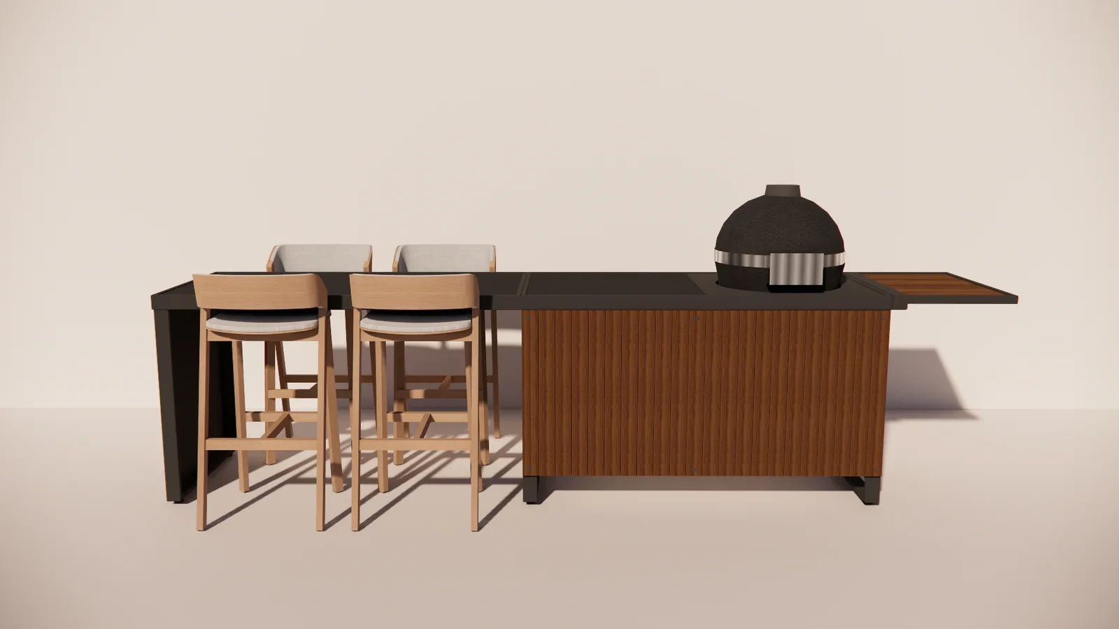 De kamado vormt het hart van de buitenkeuken en biedt veelzijdige kookmogelijkheden: van grillen en bakken tot roken en slowcooking. Dankzij de uitstekende temperatuurbeheersing en het duurzame ontwerp bereid je moeiteloos gerechten met restaurantkwaliteit. De bar nodigt uit om samen te genieten, direct naast het kookgedeelte – gezellig, functioneel en sfeervol in één.