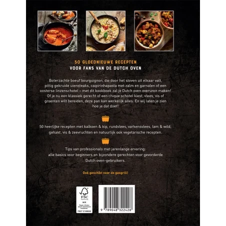 Daarnaast delen professionals met jarenlange ervaring hun beste tips. Je krijgt alle basiskennis die je nodig hebt als beginner, én genoeg verdieping en inspiratie voor gevorderde Dutch oven-gebruikers. Ook geschikt voor gebruik op de gasgrill, waardoor dit boek perfect aansluit bij buiten koken in elke vorm.
