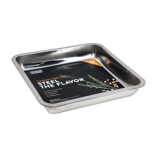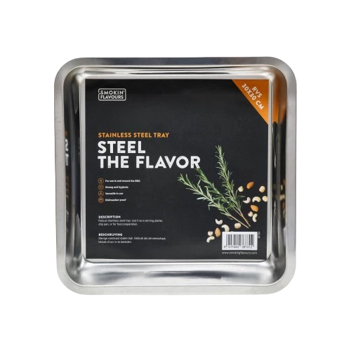 Ontdek de Smokin' Flavours RVS Tray 30 x 30. Dit duurzame roestvrijstalen dienblad van 30 x 30 cm is perfect voor het bereiden en serveren van smaakvolle gerechten. Met uitstekende warmtegeleiding is dit dienblad ideaal voor roken, grillen en bakken. Houd je keuken schoon door de tray als lekbak te gebruiken. Voeg het gemak toe aan je BBQ ervaring met de veelzijdige Smokin' Flavours RVS Tray!