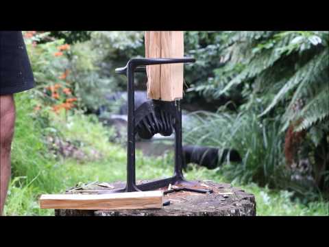 De Kindling Cracker is een robuuste gietijzeren korf met in het midden een scherp mes. Plaats een blok hout rechtop in de ring en sla er een paar keer op met een hamer of moker. Het mes splijt het hout veilig in perfecte stukken aanmaakhout.