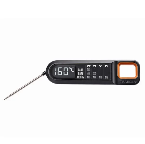 Met de Traeger Instant Read Meat Thermometer weet je binnen enkele seconden precies hoe ver je gerecht is. Deze kernthermometer is ontwikkeld voor nauwkeurigheid en snelheid, zodat je altijd controle houdt over je bereiding op de kamado barbecue, keramische BBQ of pellet grill.